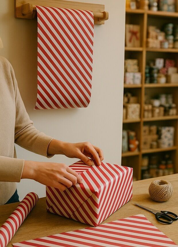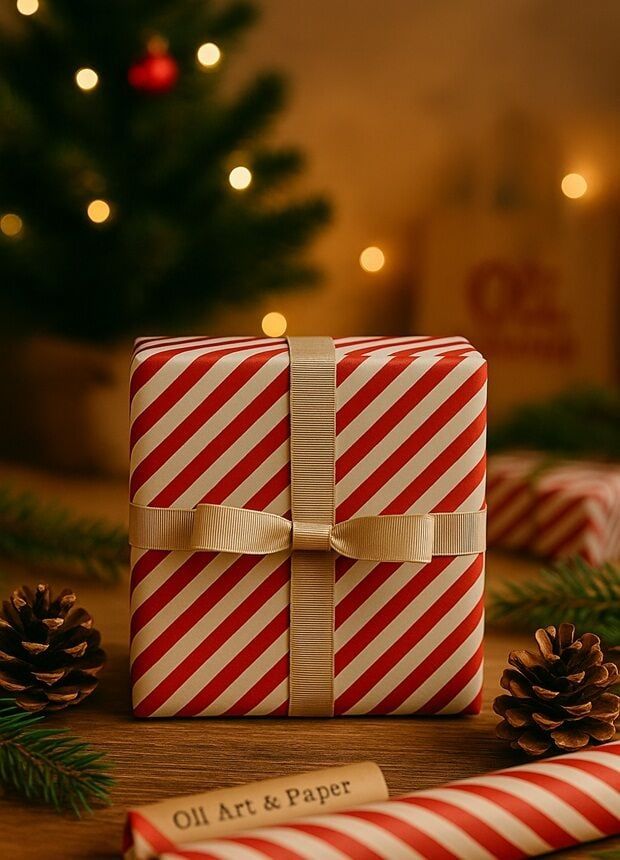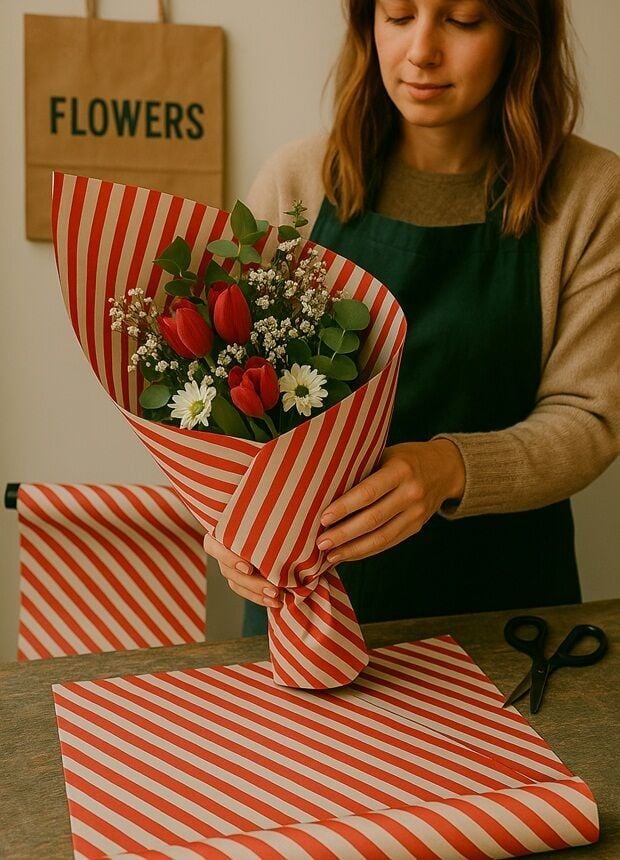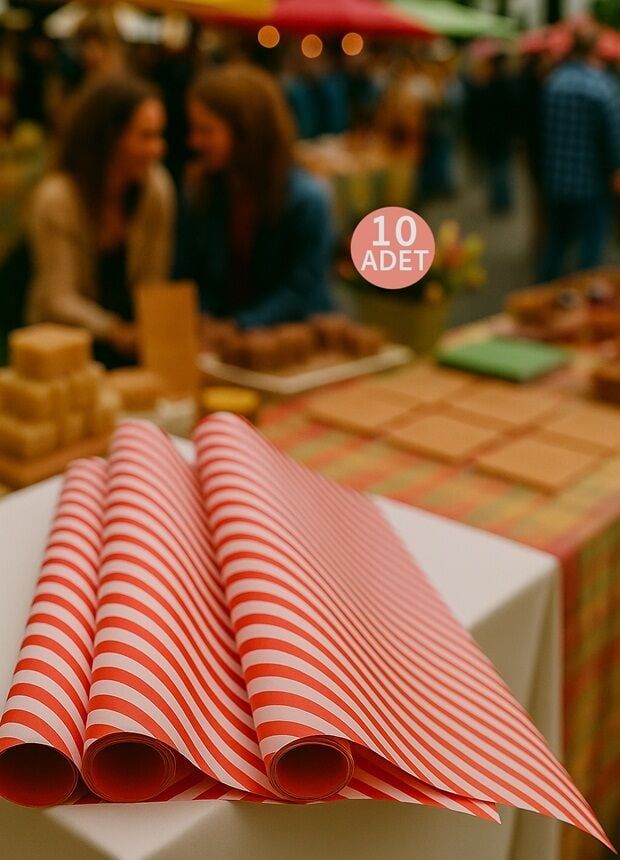 10 lu Beyaz Kırmızı (Verev çizgili) Hediye Paketi / Buket Kağıdı