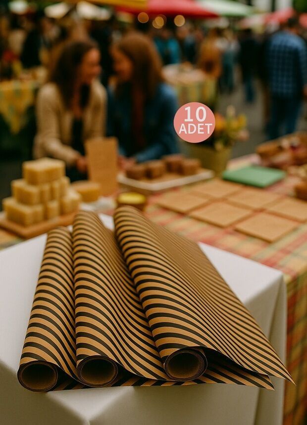 10 lu 70x100 cm Kraft Siyah (Verev çizgili) Hediye / Buket Kağıdı