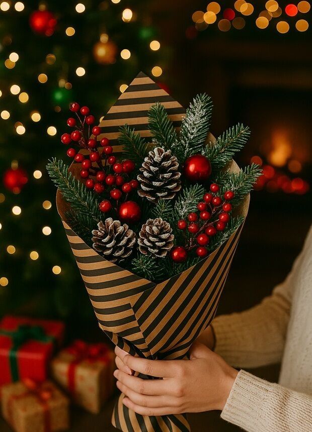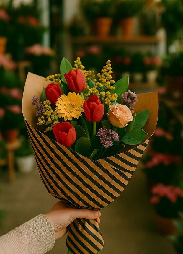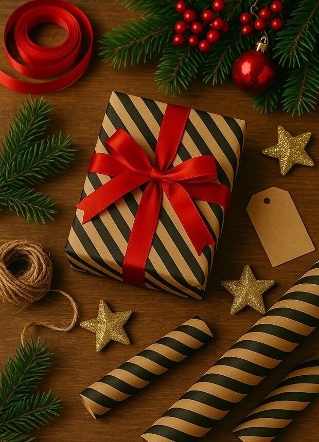 10 lu Kraft Siyah (Verev çizgili) Hediye Paketi / Buket Kağıdı