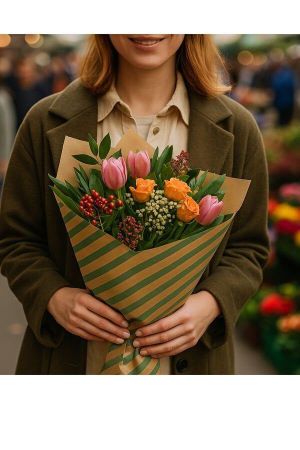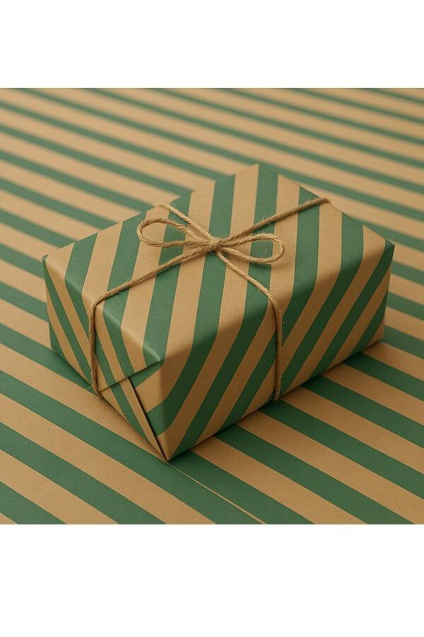 10 lu Kraft Yeşil (Verev çizgili) Hediye Paketi / Buket Kağıdı