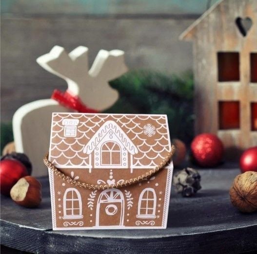 - Özel Tasarım: Ev şeklindeki bu kutular, yılbaşı ruhunu yansıtan şirin bir ambalaj sunar.