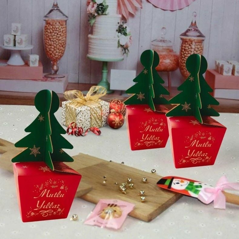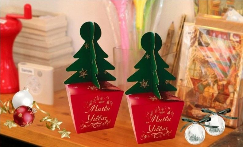 12 li Yılbaşı Çam Ağacı Saplı Hediye Kutu