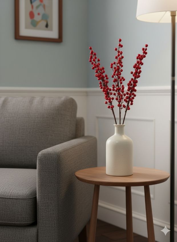 KIRMIZI HOLLY MEYVELERİ/ YAPAY YILBAŞI ÇİÇEĞİ.