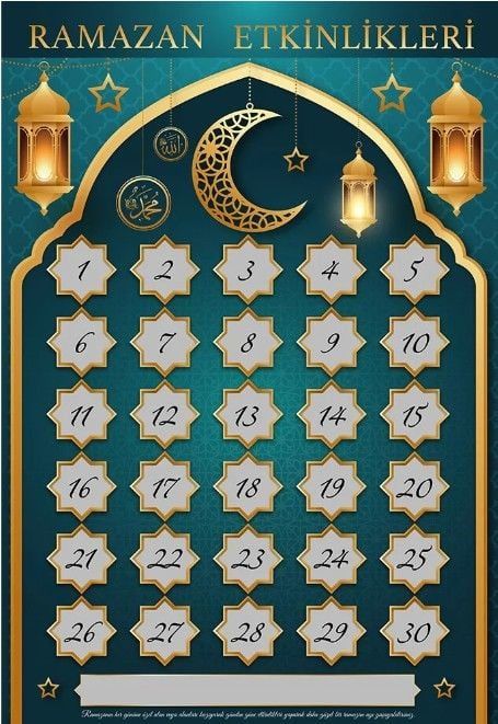 1. Ramazan Etkinliklerini Hazırlama: Ramazan Etkinliklerini düz ve görülmesi kolay bir yere asın veya yerleştirin. Her günün karşılığında gizlenmiş kazıma alanları bulunduğunu kontrol edin.