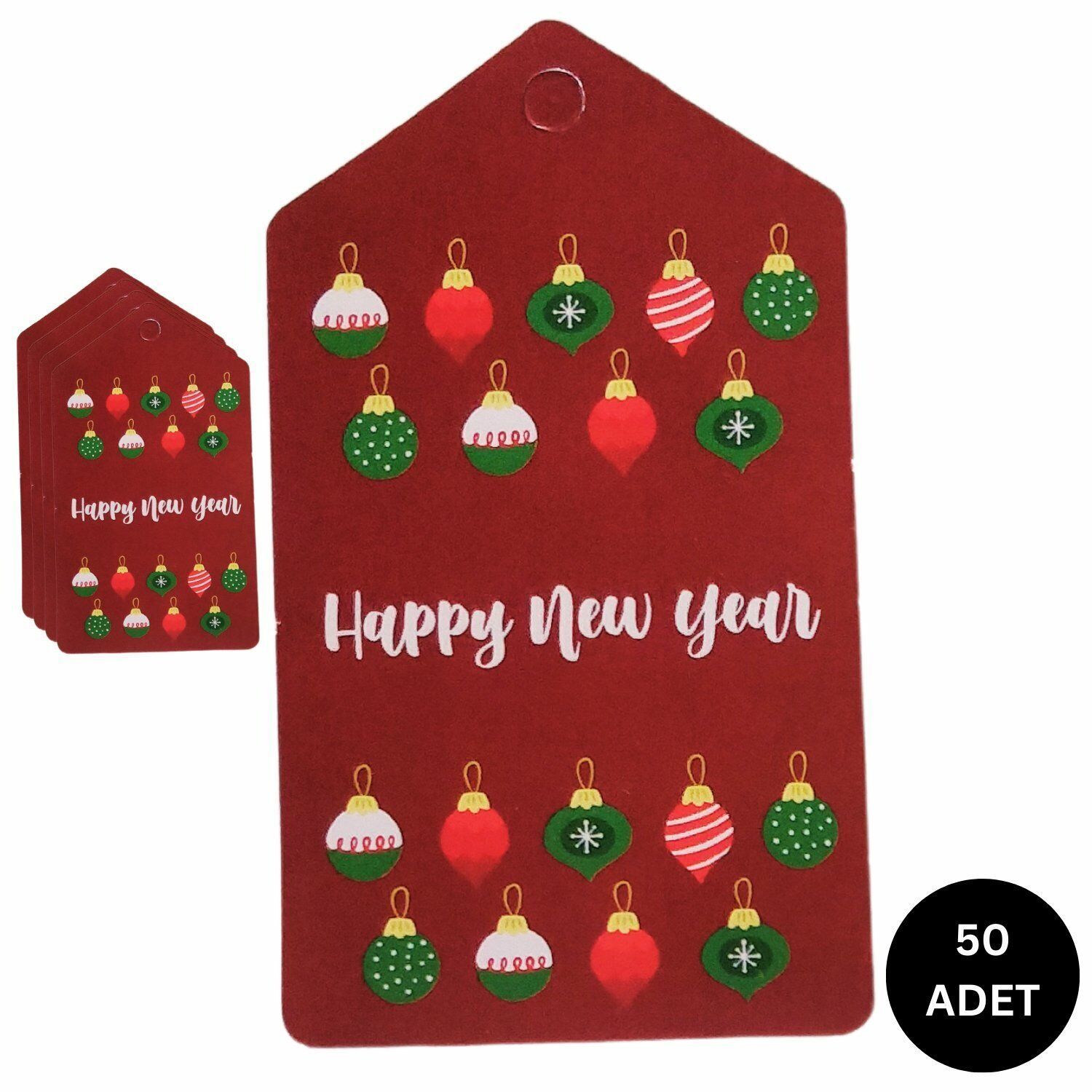 50 Li Yılbaşı Mutlu Yıllar Yazılı Hediye Etiketi, Delikli Yeni Yıl Paketleme Kartı
