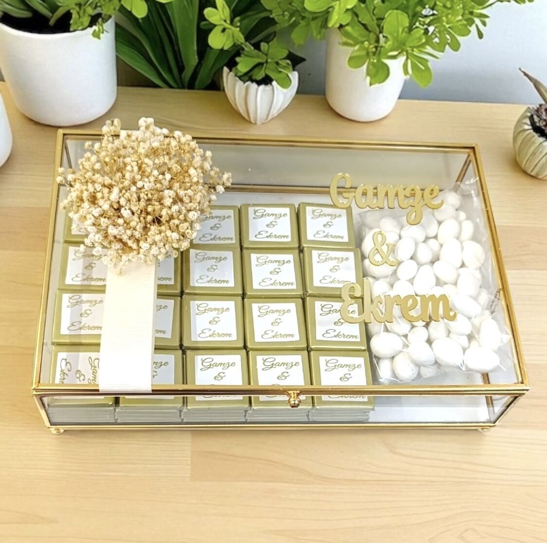 İsme özel Kapaklı kutu içerisinde çikolata tepsisi