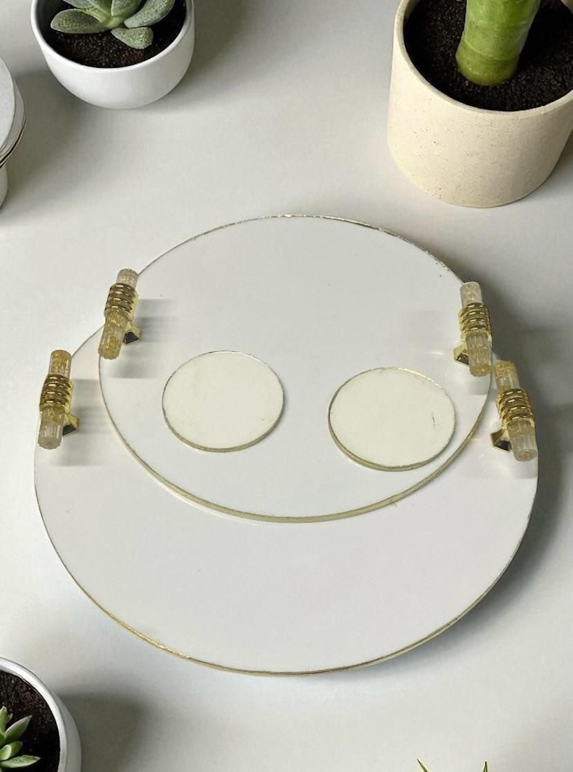 Kenarı yaldızlı yuvarlak polyester tepsi seti
