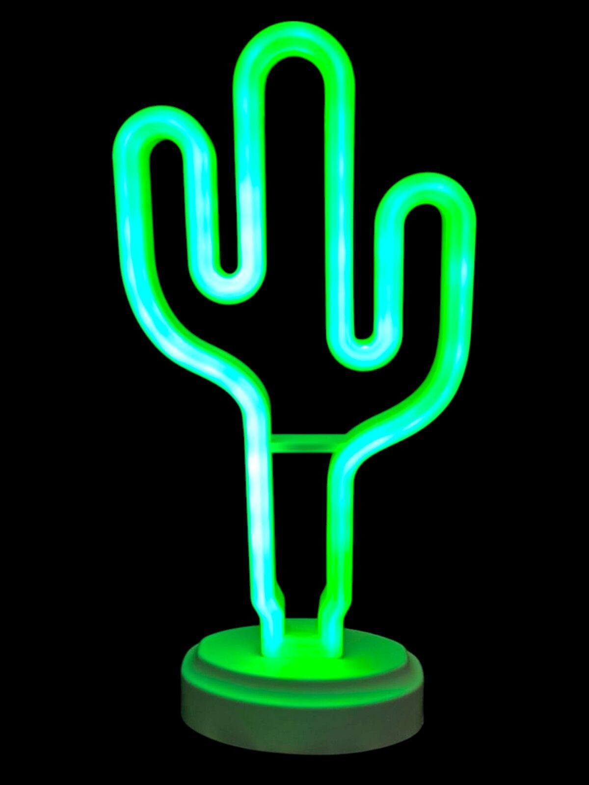 Neon Işıklı Kaktüs Masa Gece Lambası Pil+Usb